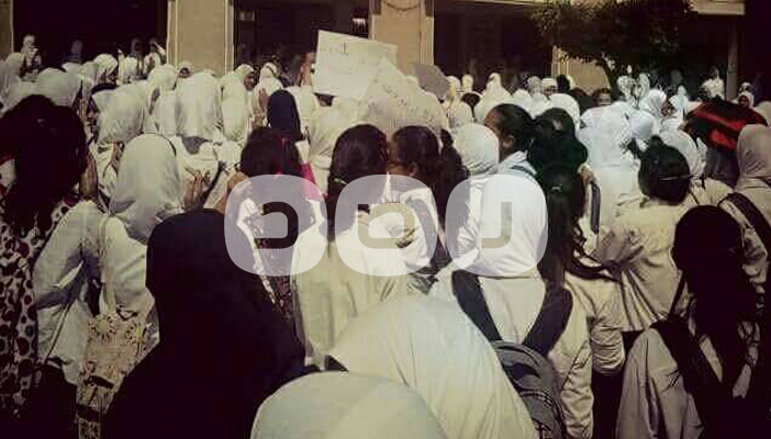 واحتشدت الطالبات في فناء المدرسة، فيما قام أحد المسئولين بالمدرسة بتهدئة الوضع وإخبارهم بأنه سيحاول إيجاد حل مع مسئولين الوزارة.