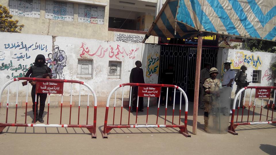 تفقد مدير أمن أسوان وحراسته إحدى لجان محافظة أسوان الخاوية تمامًا من الناخبين.