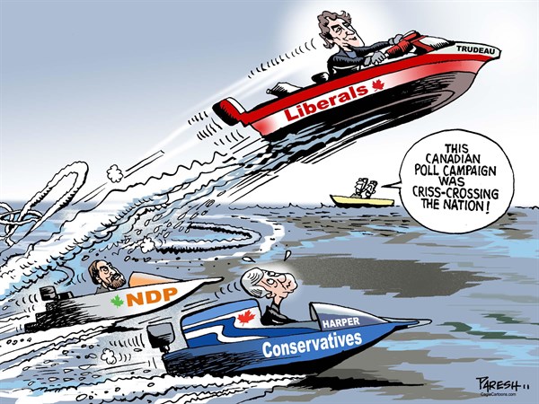 وعن الانتخابات الكندية وتقدم الليبراليين عبر نفس الموقع بهذا الرسم: