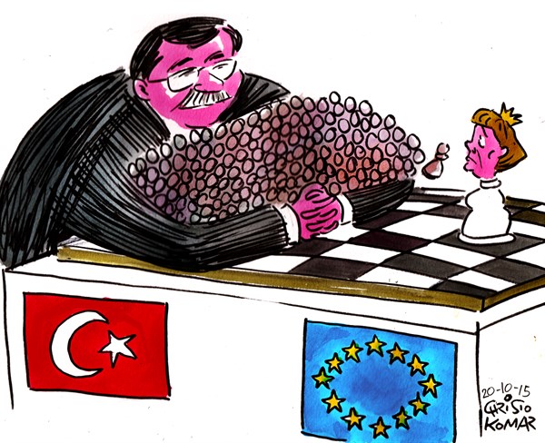 وعن مشكلة اللاجئين بين تركيا والاتحاد الأوروبي عبر موقع “كاجل” بهذا الرسم: