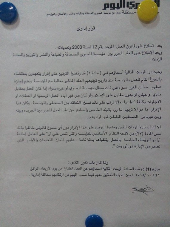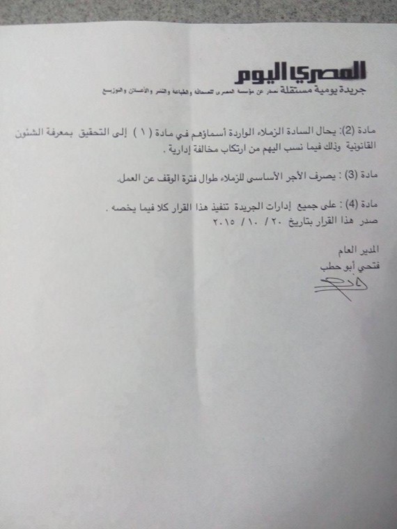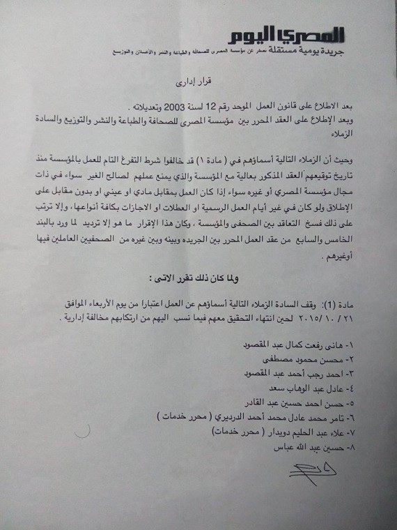 بالأسماء.. قرار إداري بوقف عدد من صحفيي “المصري اليوم” عن العمل