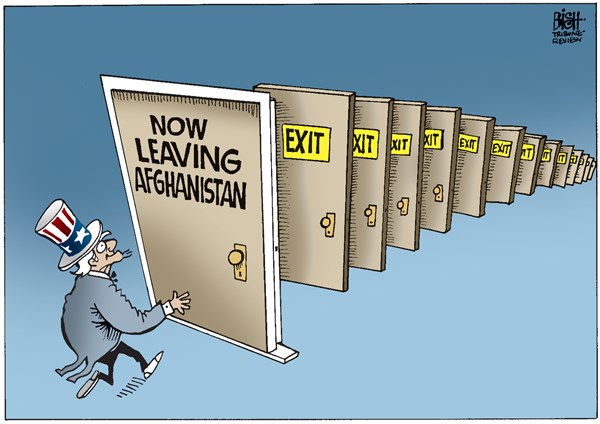 وفي الشأن الأميركي نشرت “بوليتكال كارتونز” محاولات خروج الجنود من أفغانستان، لكن كل الأبواب مسدودة أمامهم.