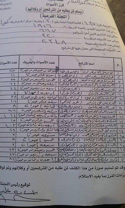 تداول نشطاء على مواقع التواصل الاجتماعي صورة لأحد كشوف نتائج الانتخابات؛ ففي إحدى لجان كفر الدوار تم إثبات تزوير نتيجة نسبة المشاركة في الانتخابات؛ حيث ذكرت كشوف دائرة “كفر الدوار” – لجنة رقم 137 أن عدد المقيدين 1916، وعدد الذين أدلوا بأصواتهم 667، منها 320 صوتًا باطلة، وإجمالي الأصوات الصحيحة 2348؛ الأمر الذي يكشف عن عملية تزوير واضحة؛ حيث إن عدد الأصوات الصحيحة جاء أكثر من عدد الأصوات التي ذهبت للتصويت من الأساس.