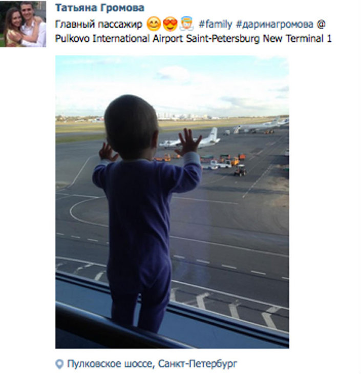 ونشرت الأم “تاتيانا جروموفا” الصورة على حسابها بموقع “تويتر” وهي تقف أمام أعلى نافذة مطار سان بطرسبورج في روسيا قبل إقلاع رحلتها إلى مدينة شرم الشيخ، وكتبت أعلى الصورة الراكب الرئيسي وقامت بعمل هاشتاج العائلة؛ حيث أصبحت صورة دارينا هي رمز للمأساة التى تعرض لها الركاب الروس.