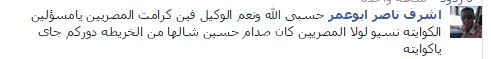 وعلق شرف ناصر أبو عمر: “حسبى الله ونعم الوكيل فين كرامة المصريين يامسؤولين؟ الكوايتة نسيوا لولا المصريين كان صدام حسين شالها من الخريطة دوركم جاي يا كوايتة”.