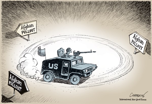 وعن الوضع الأميركي في أفغانستان نشر “بولتيكال كارتونز” هذا الرسم:
