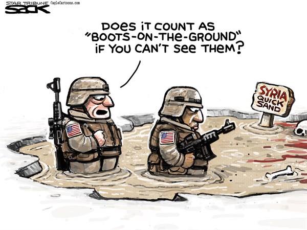 وعن خوض أميركا الحرب في سوريا نشر “بولتيكال كارتونز” هذا الرسم:
