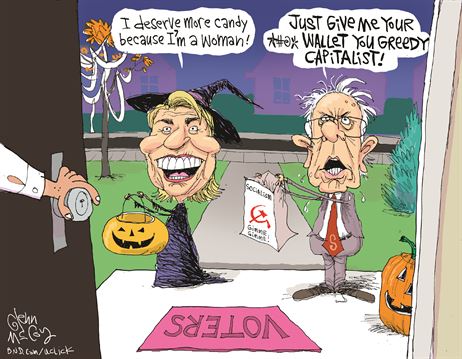 ولم تنس المواقع الإلكترونية معركة الانتخابات الأميركية التي تقترب أيامها، فنشر موقع “تاون هال” هذا الرسم: