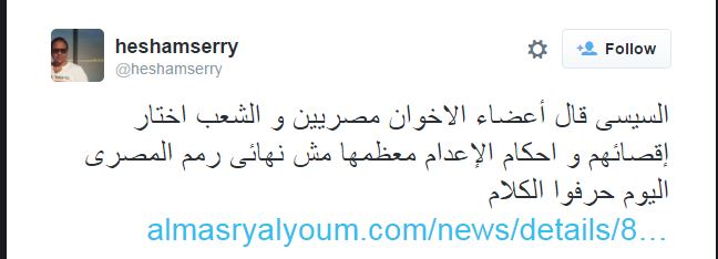 اتهم heshamserry صحيفة “المصري اليوم” بتحريف نص الحوار.