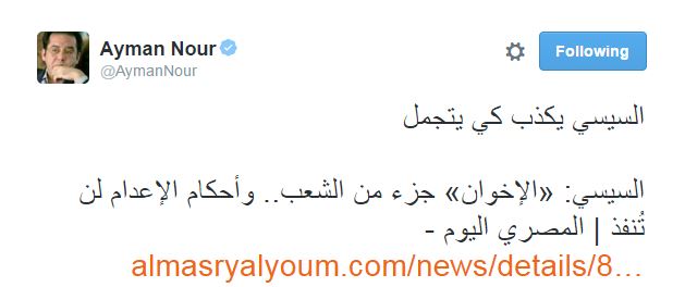 وعلق أيمن نور، مؤسس حزب “غد الثورة”، بقوله: “السيسي يكذب كي يتجمل”.
