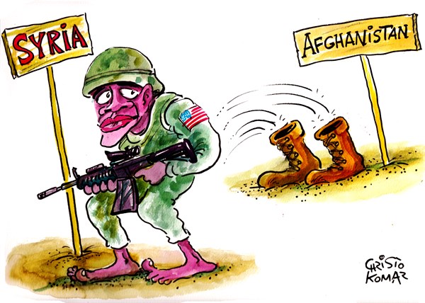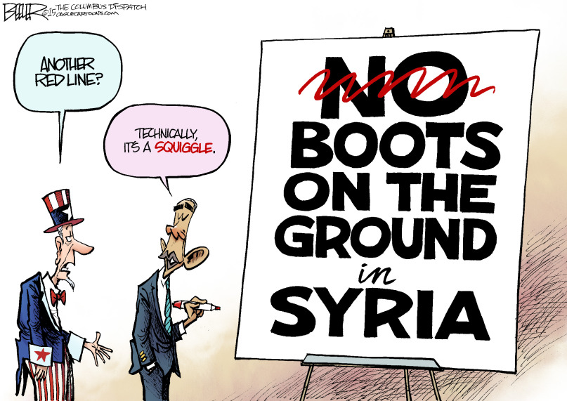 نشرت وكالات الأنباء العالمية والصحف المحلية اليوم، رسوما كاريكاتيرية معبرة عن أهم الأحداث التي مر بها عالمنا اليوم، منها ما جاء معبرا عن الوضع السوري، ومنها ما كان متعلقا بفوز أردوغان بالانتخابات التركية، ولعل أهم تلك الأحداث هو تصريح الرئيس الأميركي باراك أوباما حول سوريا حين قال: “لا جنود أميركيين على الأرض في سوريا”.
