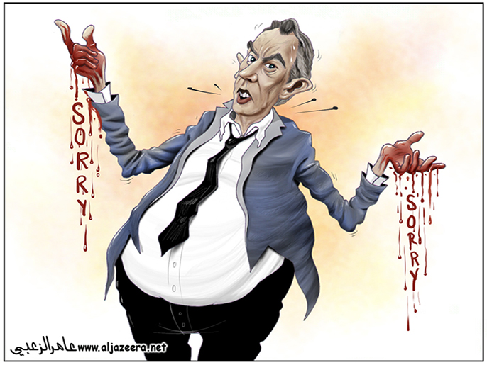 أما عن الشأن السوري واعتذار توني بلير، فقد نشر موقع “الجزيرة” هذا الرسم: