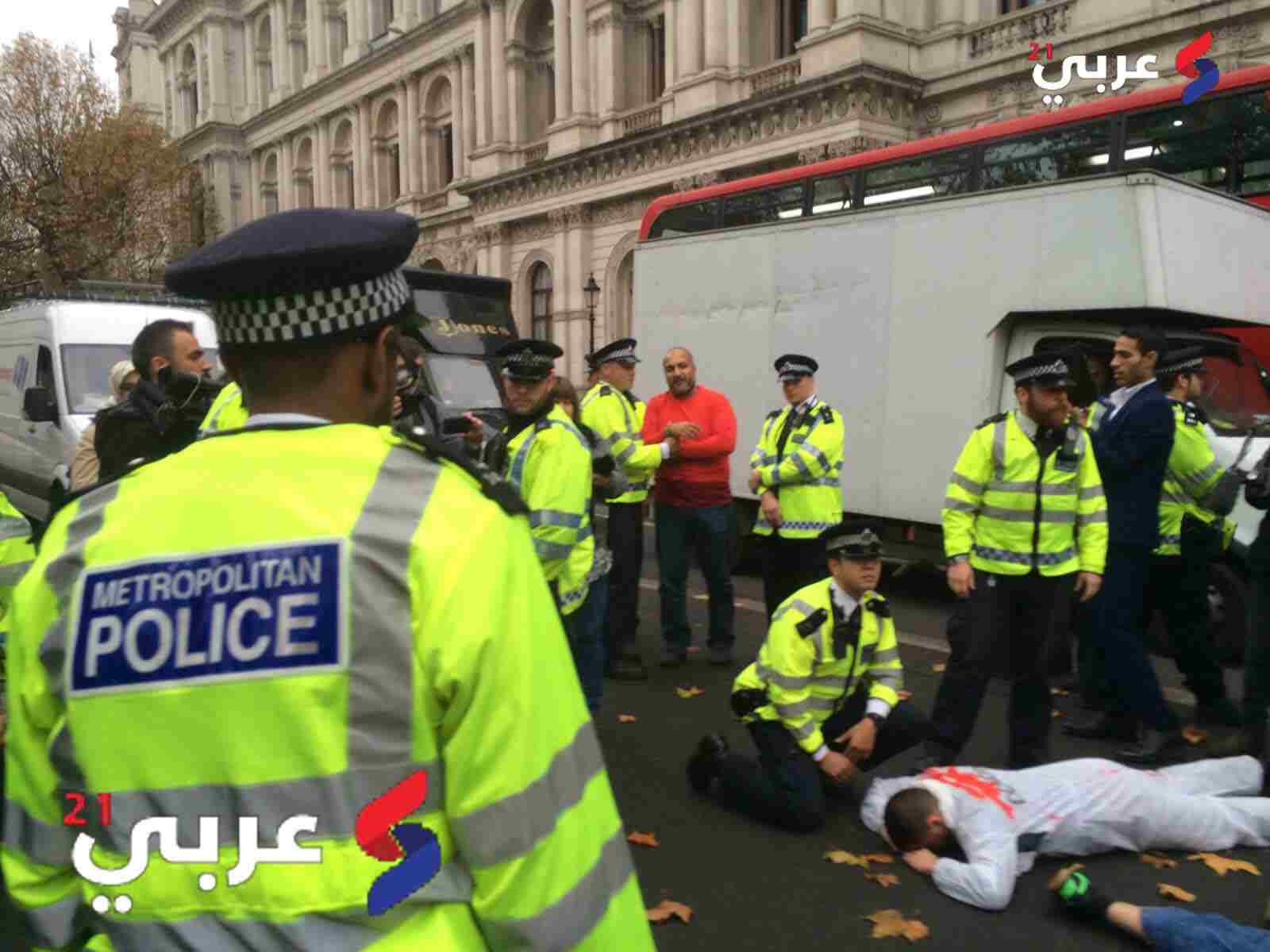 نجح المحتجون على زيارة عبدالفتاح السيسي، بلندن، في عرقلة دخوله إلى مبنى البرلمان البريطاني لنحو ساعة كاملة، قبل أن يتمكن رجال الشرطة من إخلاء المكان.