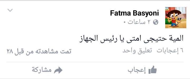 وتساءلت فاطمة بسيوني: “المية هتيجي امتى يا رئيس الجهاز”.