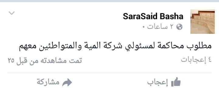 وطالبت سارة سيد بمحاكمة مسؤولي شركة المياه والمتواطئين معهم.
