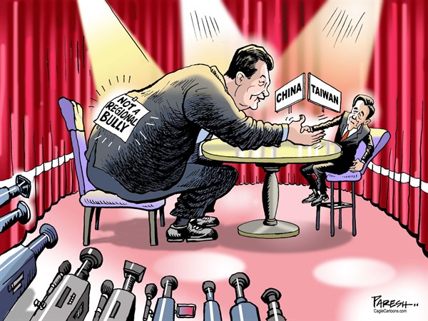 وعن اللقاء الرئاسي الصيني التايواني نشرت “بولتيكال كارتونز” هذا الرسم: