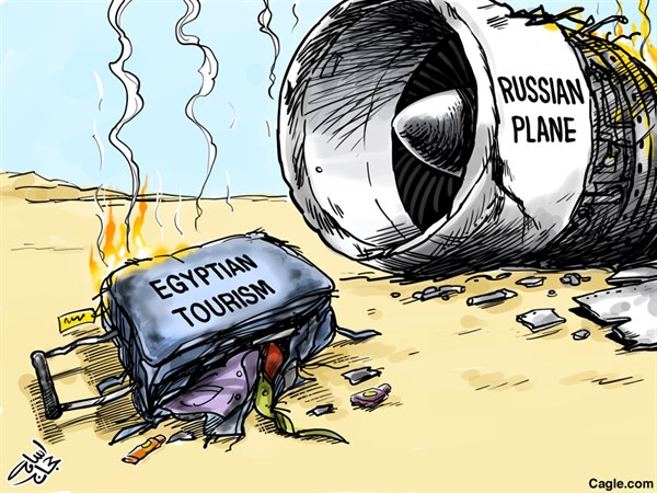 لا تزال حادثة الطائرة الروسية التي سقطت في سيناء، تشغل بال الصحف العربية والعالمية، ويظهر ذلك من خلال رسوماتهم.