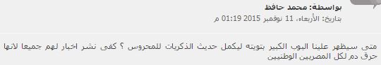 وعلق محمد حافظ قائلا: “متى سيظهر علينا البوب الكبير بتويتة ليكمل حديث الذكريات للمحروس؟ كفى نشر أخبار لهما جميعا، لأنها حرق دم لكل المصريين الوطنيين”.