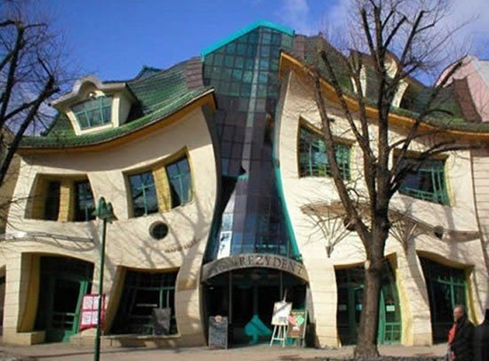 المنزل المعوج هو مول تجاري في بولندا، له جدران معكوسة التصميم من الداخل والخارج، جعلت المبنى يبدو معوجًا من جميع أطرافه.