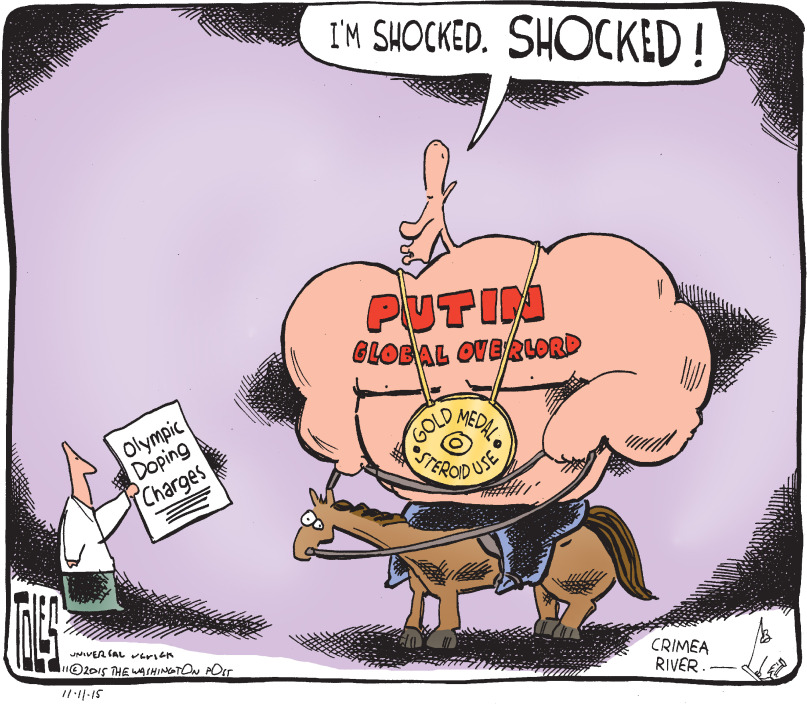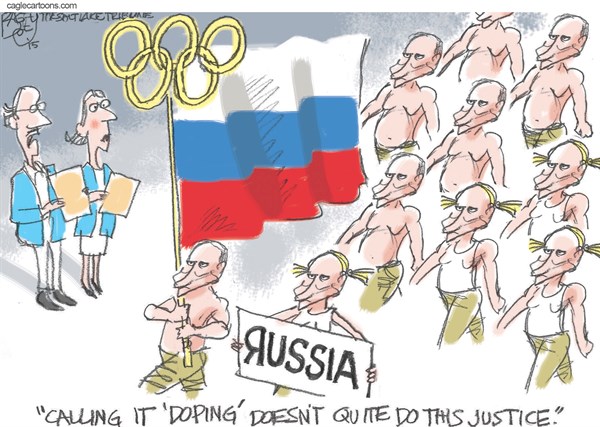 أما عن فضيحة روسيا في دورة الألعاب الأوليمبية فنشرت جريدة ذا ويك الأميريكة هذا الرسم: