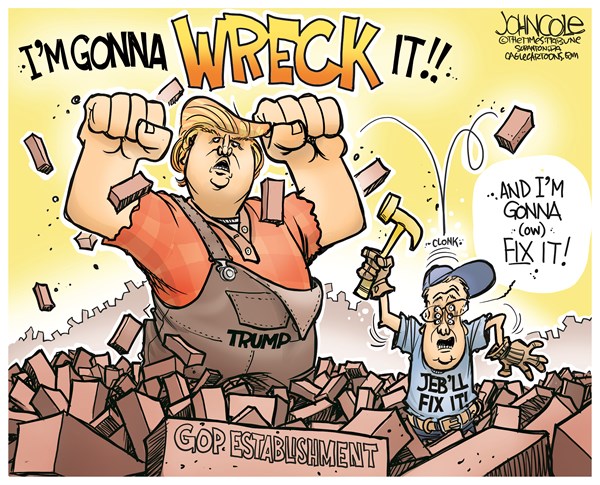 وعن احتدام الصراع الدائر بين ترامب وجيب بوش على الرئاسة الأميركية نشر موقع “كاجل” هذا الرسم: