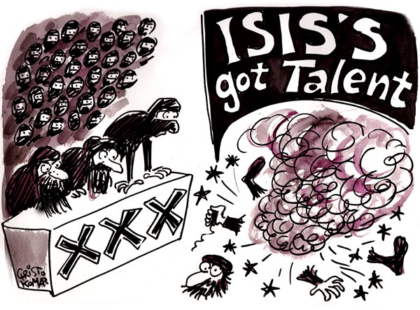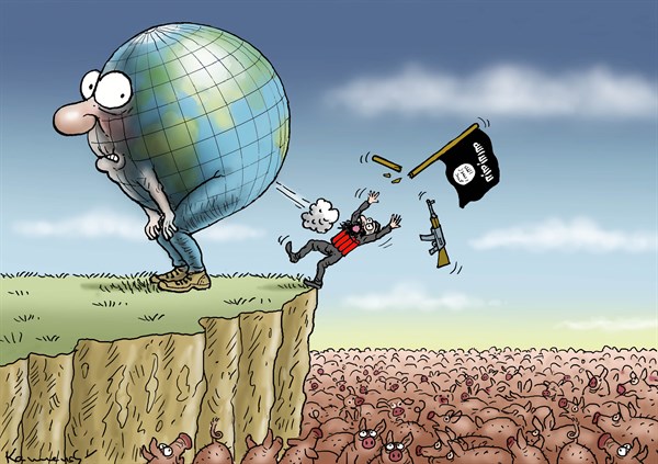 وتسعى دول العالم في الوقت الحالي لتسريع خطواتها نحو التخلص من تنظيم الدولة، وهو ما تخيله موقع “بوليتكال كارتونز” من خلال هذا الرسم: