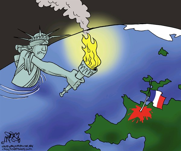 وعن مساندة أميركا لفرنسا في أزمتها الأخيرة، نشر موقع “كاجل” هذا الرسم:
