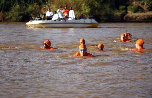 واجتازت النسوة مئات الأمتار سباحة في المياه المضطربة على وقع هتافات التشجيع التي أطلقها جمع احتشد على ضفتي النهر لتشجيعهن، وواكب السابحات فريق من السباحين السودانيين الذين توزعوا على عدة زوارق.