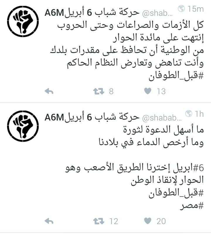 حركة 6 أبريل: اخترنا التفاوض والحوار لإنقاذ الوطن