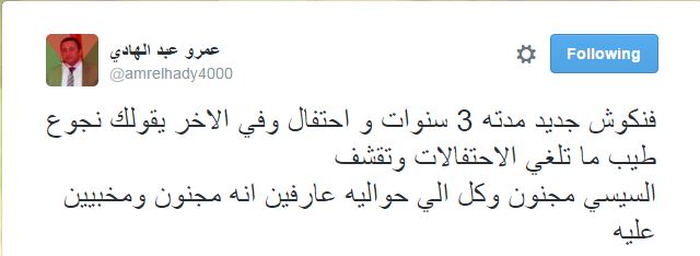 وقابل مغردون تصريحات السيسي بجانب من السخرية والاستهزاء؛ إذ اعتبر الناشط عمرو عبد الهادي أن مشروع “بورسعيد” فنكوش جديد”، يقول: “فنكوش جديد مدته 3 سنوات واحتفال وفي الآخر يقولك نجوع، طيب ما تلغي الاحتفالات وتقشف السيسي مجنون وكل الي حواليه عارفين انه مجنون ومخبيين عليه”.