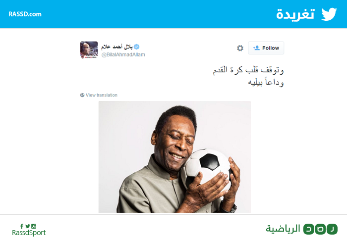 نشر المعلق الكروي بلال علام، خبر وفاة بيليه، الأسطورة البرازيلية في كرة القدم، خلال تغريدة له على موقع التواصل الاجتماعي “تويتر”.
