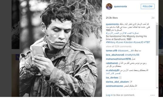 كتبت الملكة رانيا قرينة الملك عبدالله ملك الأردن منشورًا لها على موقع “إنستجرام” تتغزل من خلاله في زرجها الملك؛ حيث نشرت صورة للملك في شبابه علقت عليها قائلة: “كم أحب الرجل الذي تنظر إليه، مليك قلبي، عشت فيه لطالما نبض”.