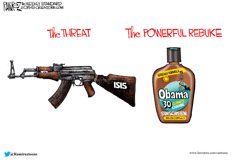 وقام موقع “ذا ويك” الأميركي بنشر هذا الكاريكاتير الذي يسخر من سياسات الرئيس الأميركي باراك أوباما ضد تنظيم الدولة: