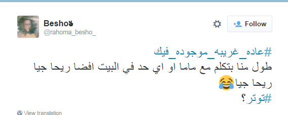وعلقت ‏rahoma besho بقولها : “طول منا بتكلم مع ماما أو أي حد في البيت افضل رايحة جاية”.