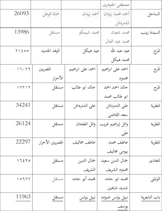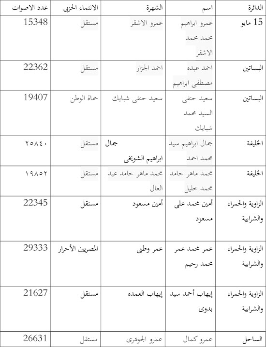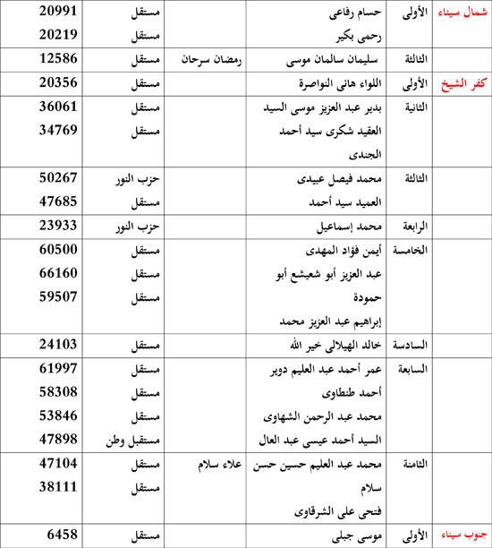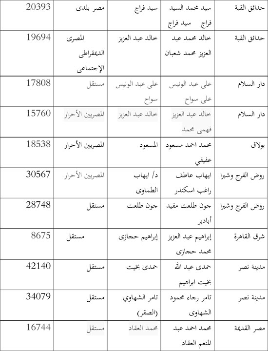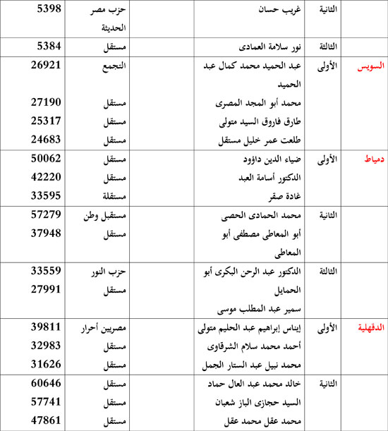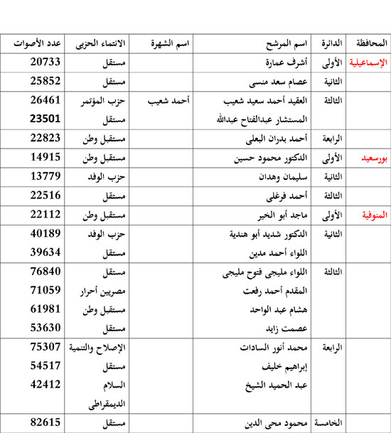 وجرت الانتخابات في 13 محافظة هي: “القاهرة، القليوبية، الدقهلية، الشرقية، المنوفية، الغربية، كفر الشيخ، دمياط، بورسعيد، السويس، الإسماعيلية، شمال سيناء، جنوب سيناء”.