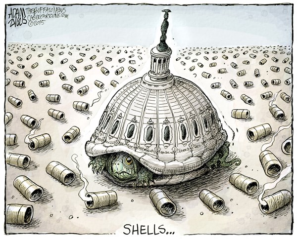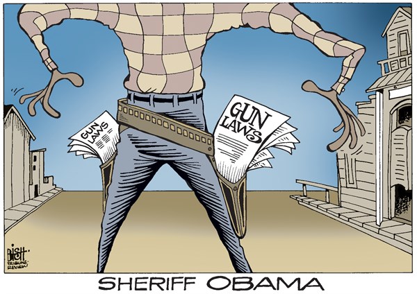 وتبدأ جولة الكاريكاتير من موقع “بولتيكال كارتونز” الذي قام بنشر هذا الرسم المعبر عن محاولات أوباما لتقنين حمل السلاح الأميركي:
