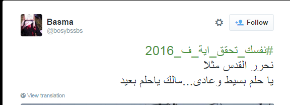 –  Basma: “نحرر القدس مثلا.. يا حلم بسيط وعادي.. مالك يا حلم بعيد”.