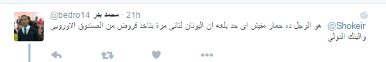 –Sayed ghrabawy : “طموح السيسي الوصول بالاقتصاد المصري لنفس مستنقع الاقتصاد اليوناني، علشان نشحت سوا”.