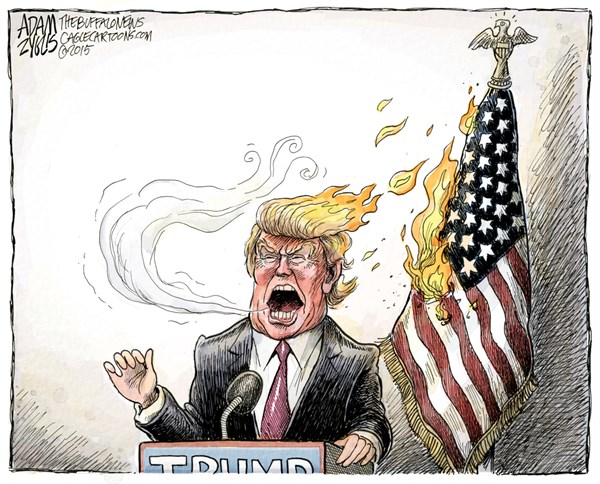 البداية من موقع “كاجل” الذي نشر هذا الرسم الساخر من تصريحات المرشح الرئاسي الأميركي دونالد ترامب النارية، موضحا أنها في سبيلها لحرق أميركا نفسها: