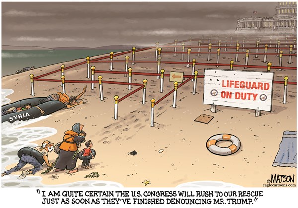 جاءت رسومات الكاريكاتير التي نشرتها صحف ومواقع العالم معبرة عن العديد من الموضوعات المهمة التي تمثل اهتماما بارزا في عدة مناطق في العالم، والتي كان أبرزها أحوال السوريين في أميركا، وأمنيات تنظيم الدولة، وقانون حمل السلاح الأميركي، والمرشح الرئاسي الأميركي المثير للجدل دونالد ترامب، وموضوعات أخرى نرصدها في هذا التقرير.