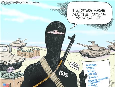 ونشر موقع “تاون هاون” هذا الرسم المعبر عن قائمة أمنيات تنظيم الدولة في عيد الكريسماس الذي بات قريبا، حيث رأى الموقع أن التنظيم لا يحتاج في قائمة هدايا الكريسماس إلا الأسلحة والدبابات وغيرها من الأسلحة: