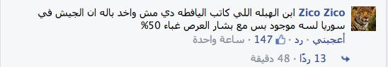 وتنوعت التعليقات التي أطلقها رواد الفيس بوك على الصورة بين السخرية والاستياء؛ حيث قال أحد رواد “فيس بوك”، ابن الهبلة اللي كاتب اليافطه دي مش واخد باله ان الجيش في سوريا لسه موجود بس مع بشار، غباء 50%”.