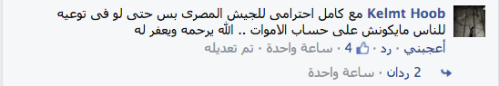 وشارك حساب آخر باسم “كلمة حب” بقوله: “مع كامل احترامى للجيش المصري بس حتى لو فى توعية للناس مايكونش على حساب الاموات .. الله يرحمه ويعفر له”.