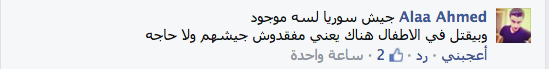وقال علاء أحمد: “جيش سوريا لسه موجود وبيقتل في الاطفال هناك يعني مفقدوش جيشهم ولا حاجه”.