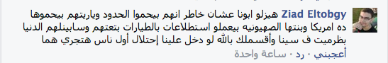 وجاء رأي زياد الطوبجي في قوله: “هيزلو ابونا عشان خاطر انهم بيحموا الحدود وياريتهم بيحموها ده امريكا وبنتها الصهيونيه بيعملو استطلاعات بالطيارات بتعتهم وسايبين ن الدنيا بظرميت في سيناء وأقسملك بالله لو دخل علينا إحتلال أول ناس هتجري هما”.
