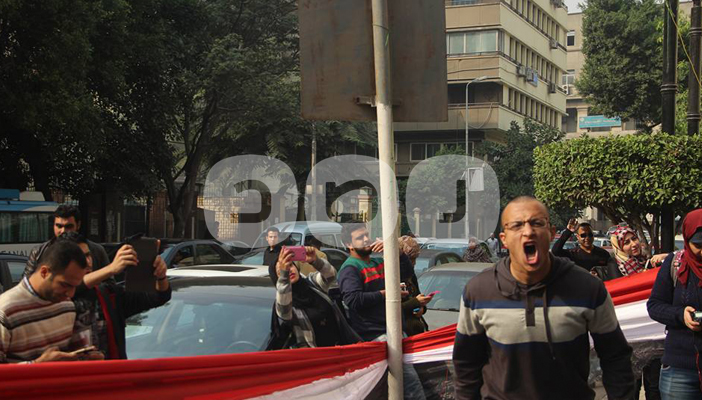 وأعلن المحتجون تضامنهم مع محمود أبو زيد، المنسق العام لحاملي الماجستير والدكتوراه، والذي تم إلقاء القبض عليه، مطالبين بحفظ المحضر، ورفض الاتهامات الموجهة إليه.