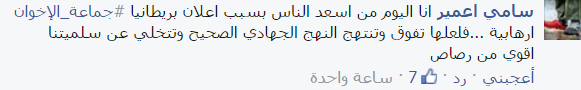 سامي اعمير: “أنا اليوم من أسعد الناس بسبب إعلان بريطانيا، فلعلها تفوق وتنتهج النهج الجهادي الصحيح وتتخلى عن سلميتنا أقوى من الرصاص”.