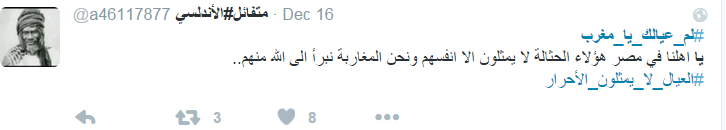 أعرب عدد من المغردين المغاربة عبر موقع التدوين المصغر “تويتر” عن تضامنهم مع هاشتاج “لم عيالك يا مغرب”، الذي أطلقه مصريون تعبيرًا عن رفضهم للزيارة التي قام بها مجموعة من الفنانين والإعلاميين والمثقفين، لمصر، تلبية لدعوة رسمية وجهت لهم من قبل السفارة المصرية بالرباط.