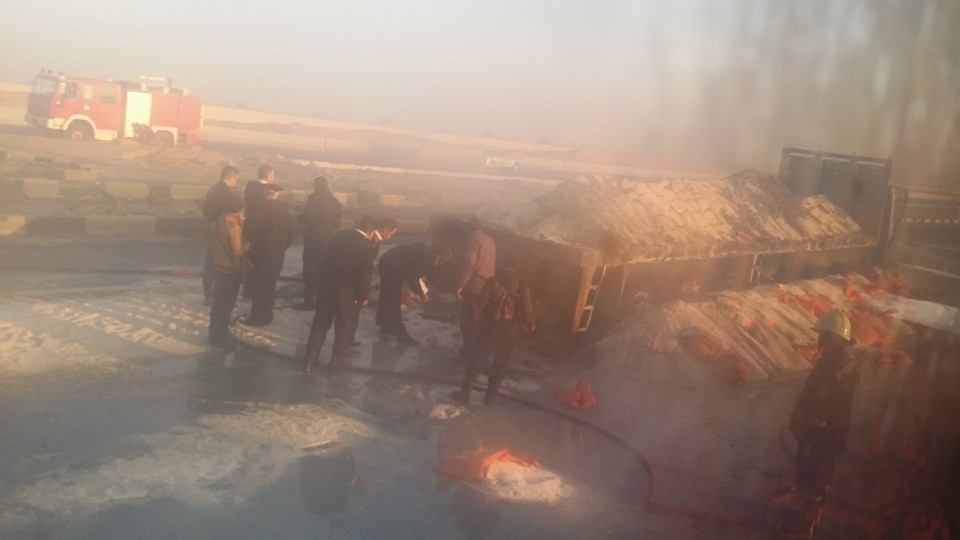 وكان تصادم قد وقع على طريق مصر- الإسماعيلية صباح اليوم بين سيارتي نقل محملتين بمواد؛ بسبب كثافة الشبورة المائية؛ مما أدى إلى انفجارهما واشتعال النيران بحمولتهم، وعلى الفور هرعت قوات الحماية المدنية إلى موقع الحادث، وتمكنت من إخماد النيران، ولم يتم الإعلان عن أي خسائر بشرية.