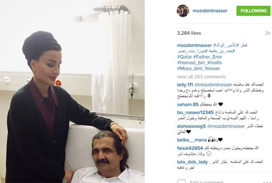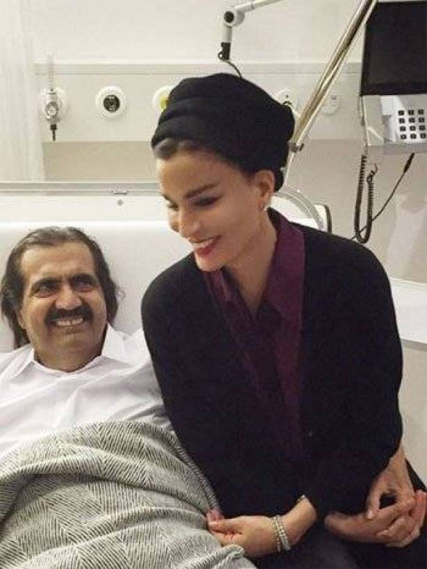 نشرت “الشيخة موزة بنت ناصر” زوجة أمير دولة قطر السابق الشيخ حمد بن خليفة آل ثان، صورًا لها عبر موقع “انستجرام” برفقة زوجها عقب إجرائه عملية جراحية ناجحة في مدينة زيورخ السويسرية.